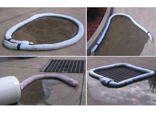 Generally, a spill is moving towards a drain point. The booms are deployed in the path of the spill to minimise the area effected by the spreading liquid and facilitate fast clean up.